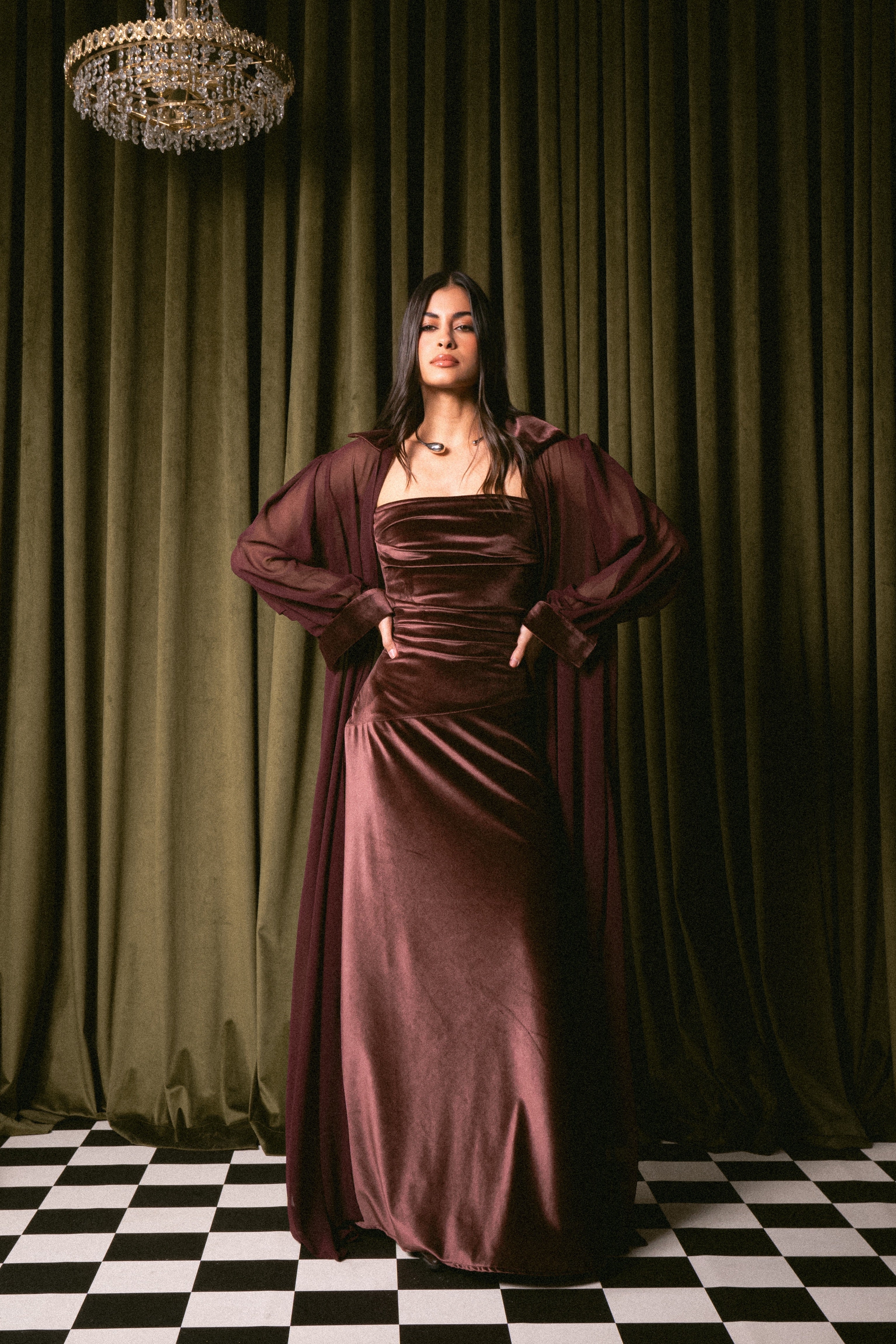 Model is wearing size XSDelivery within 1 week2-piece set: Dress & BishtDress length: 55 inchesBisht length: 57 inches