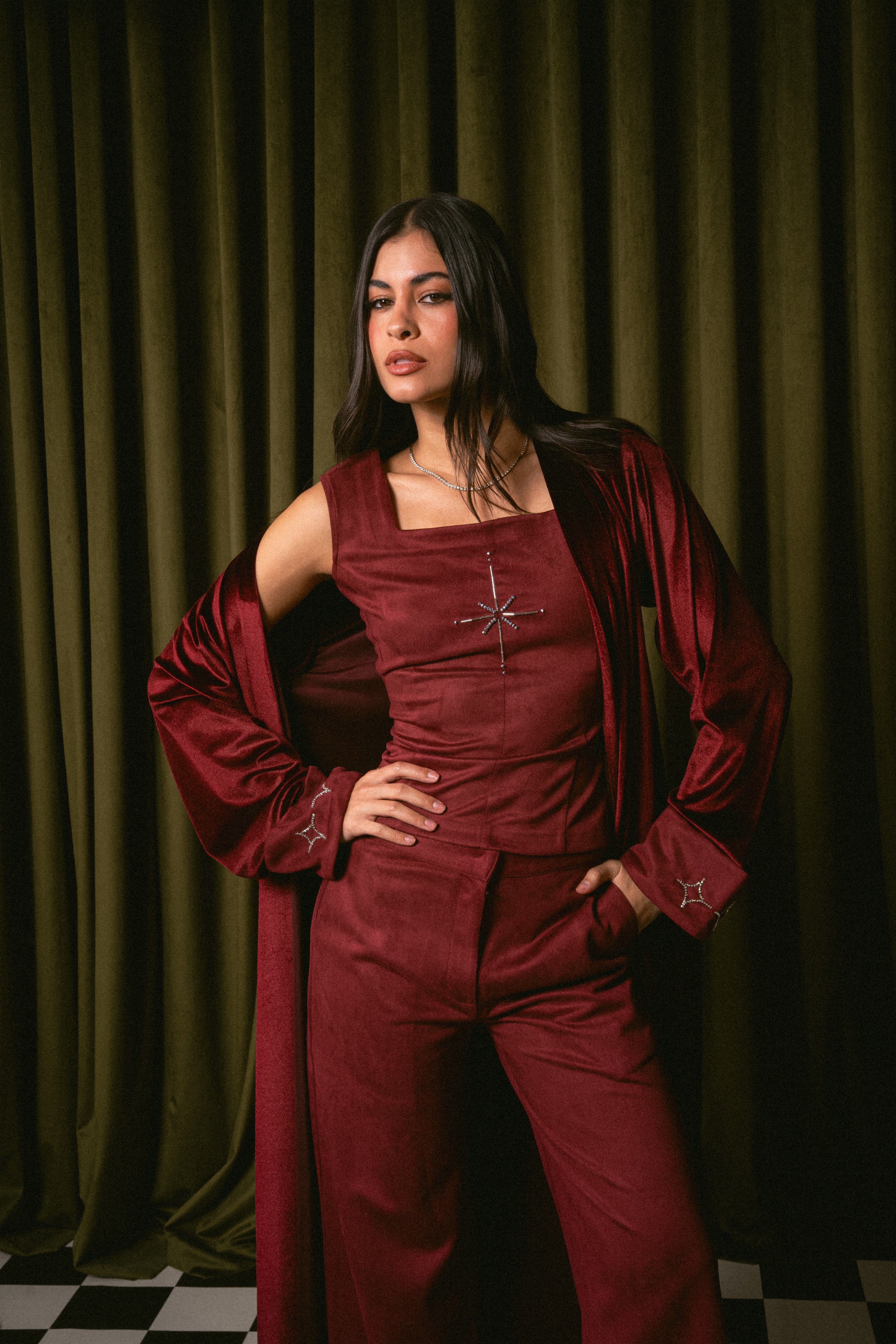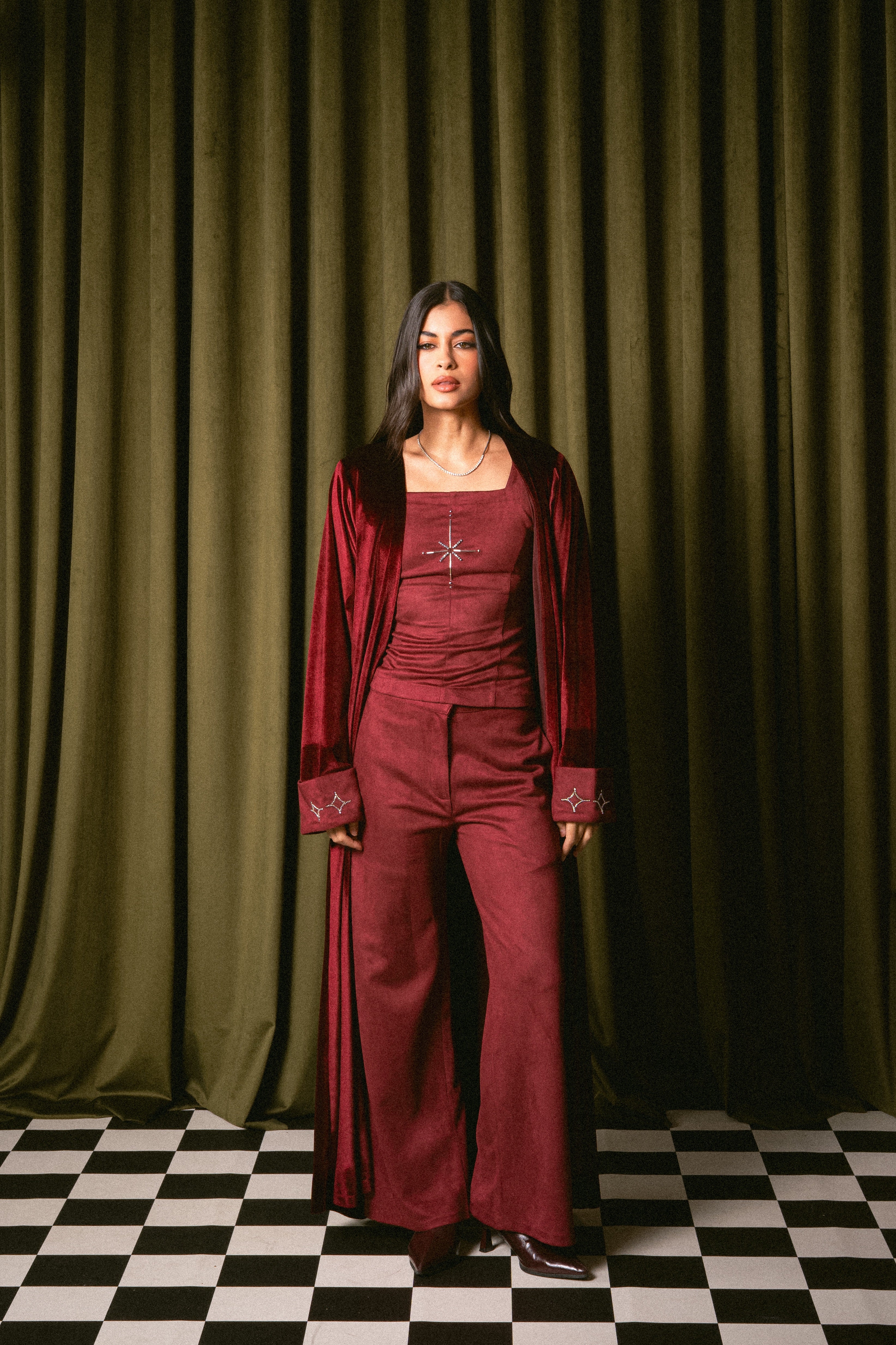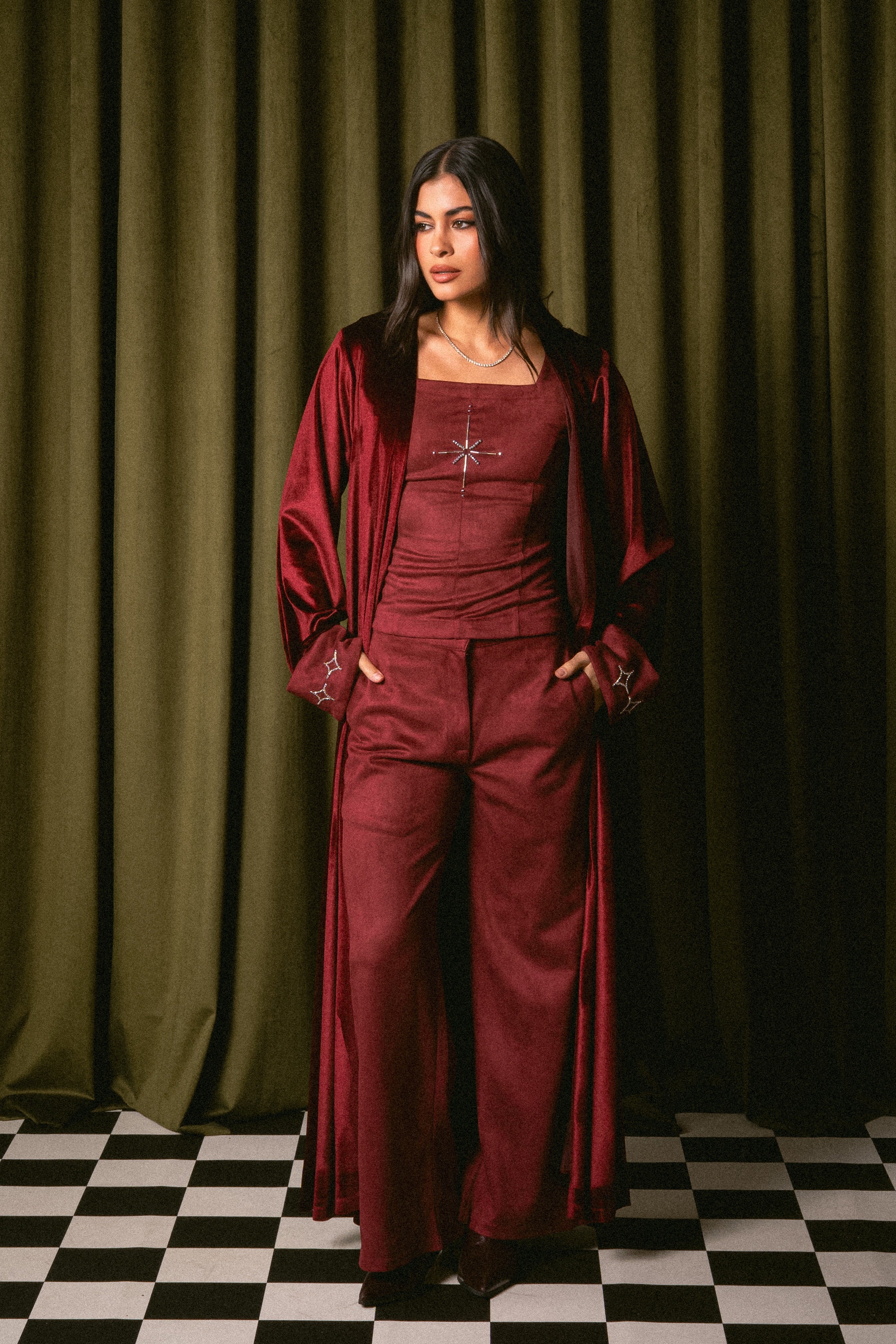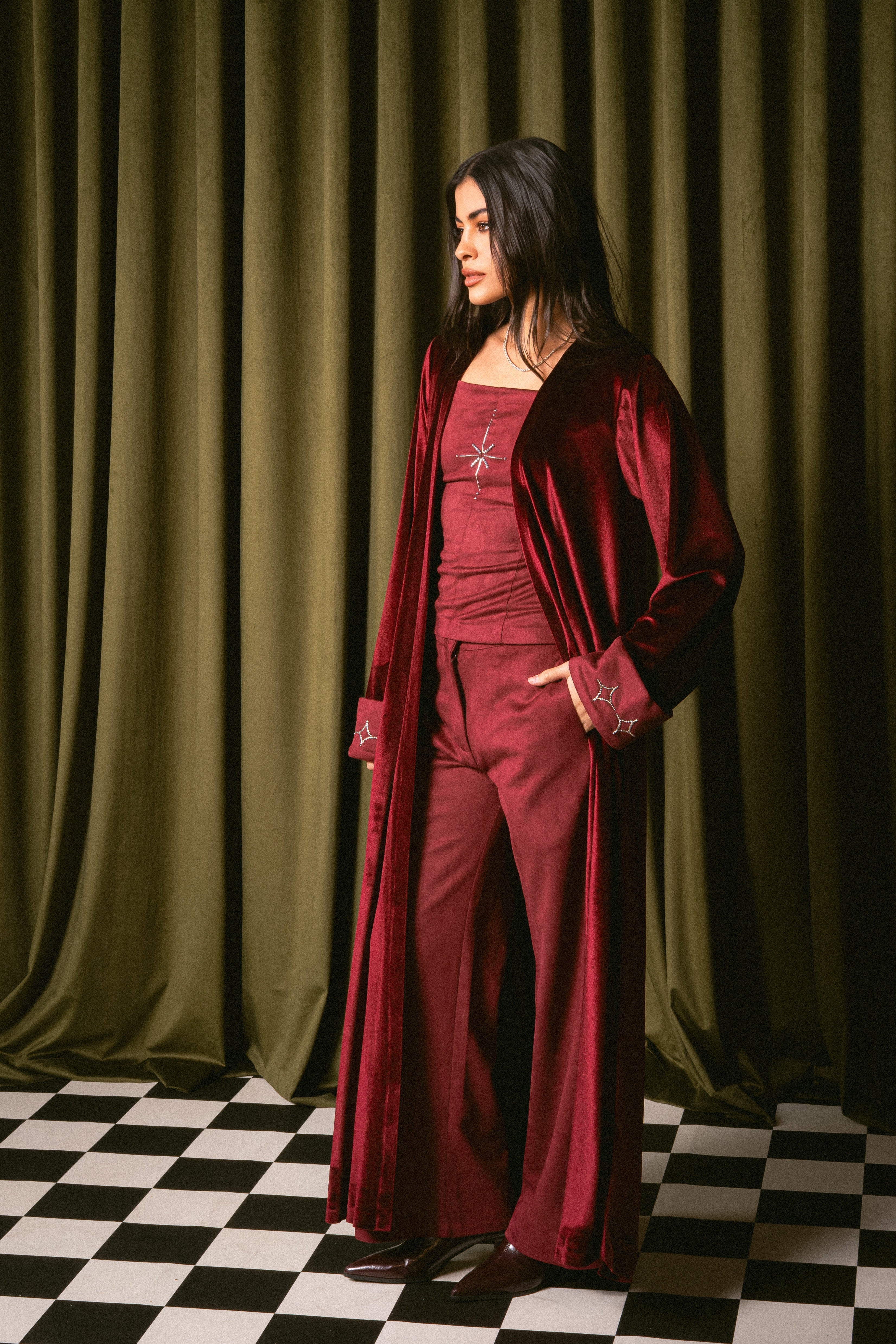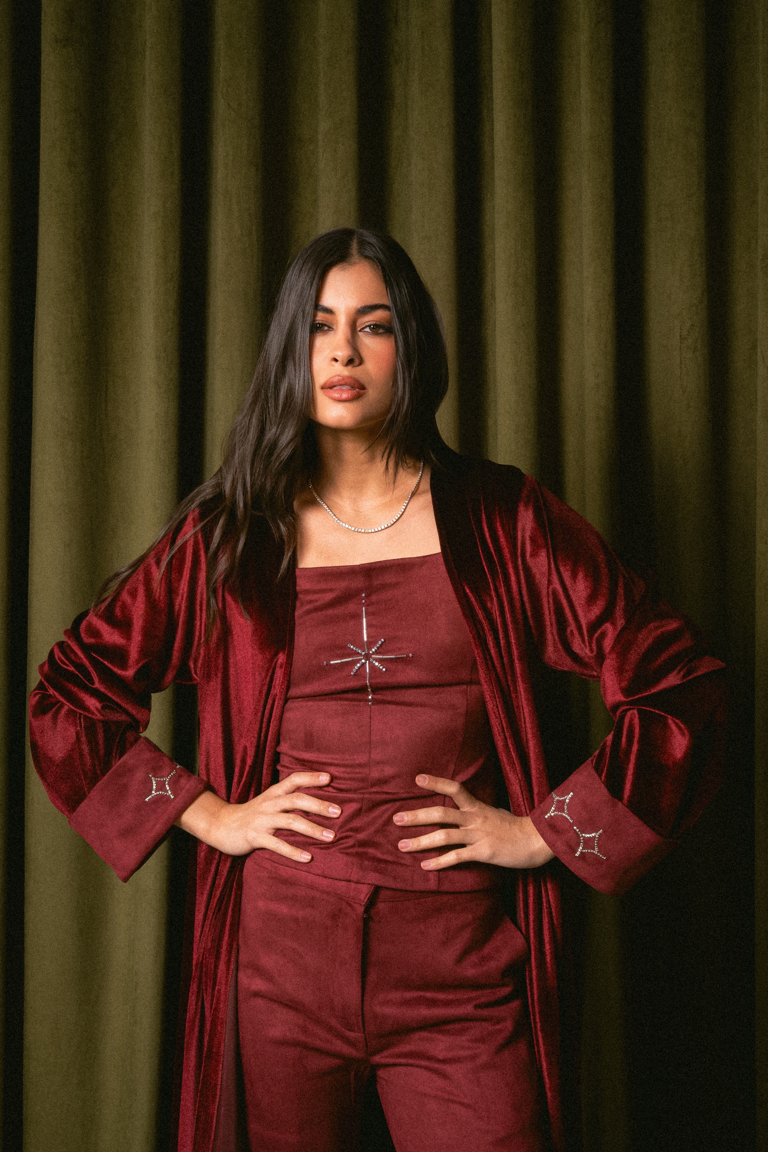 Model is wearing size XSDelivery within 1 week3 piece set: Top, Pants & BishtPants length: 40 inchesBisht length: 56 inc